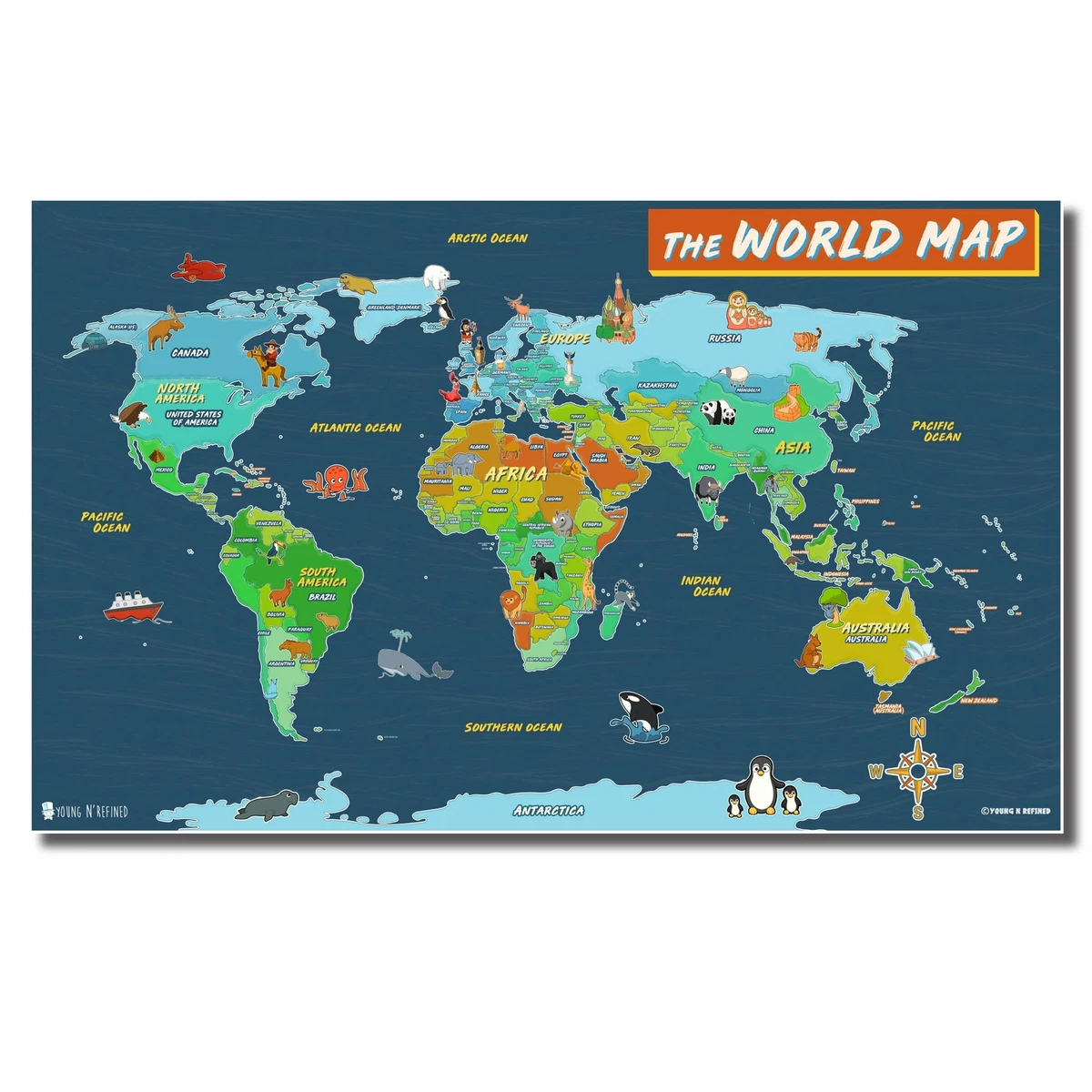 Illustrated World map poster for kids Laminated | eBay