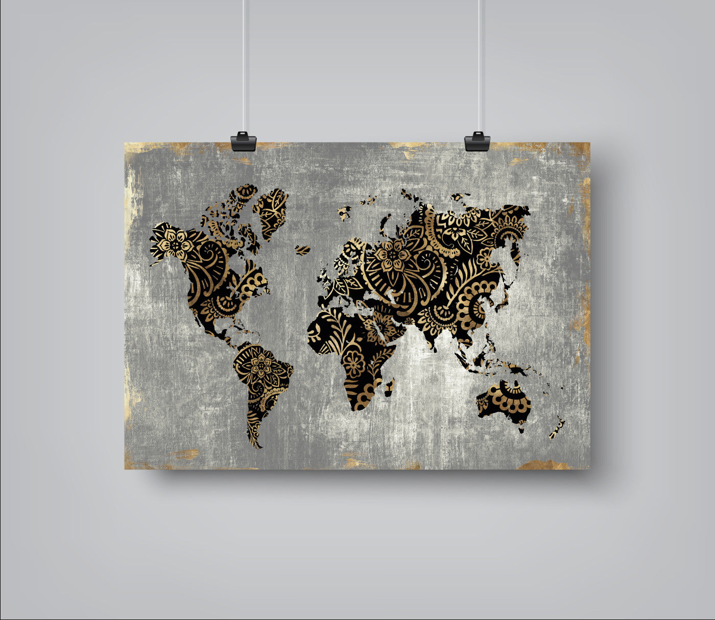 Art Print Wall Art Gold World Map PI Creative Art โ Americanflat